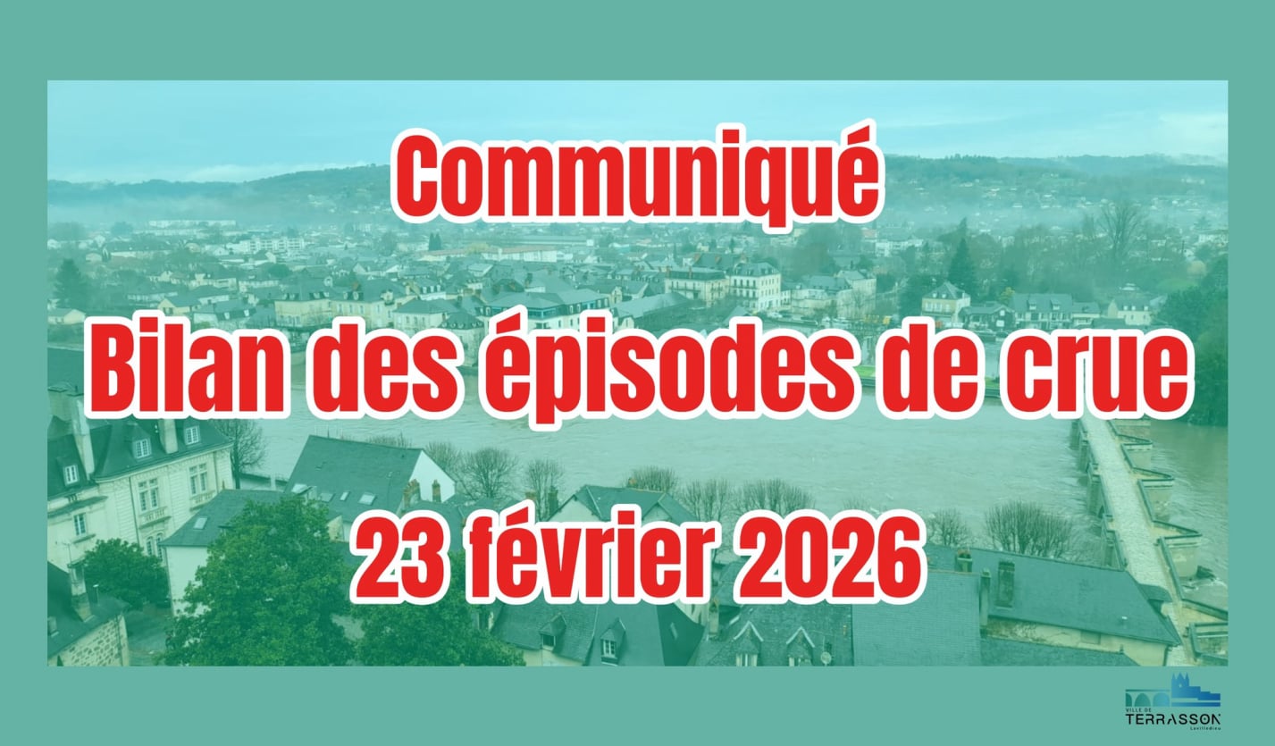 Au cours des deux dernières semaines, la commune de Terrasson-Lavilledieu a été frappée à trois reprises par des épisodes de crue d’ampleur exceptionnelle. Il s’agit d’un événement historique par sa répétition et par les niveaux atteints. La Ville adresse une pensée sincère et solidaire à l’ensemble des administrés, particuliers, acteurs économiques et partenaires institutionnels qui ont été lourdement impactés par ces inondations.